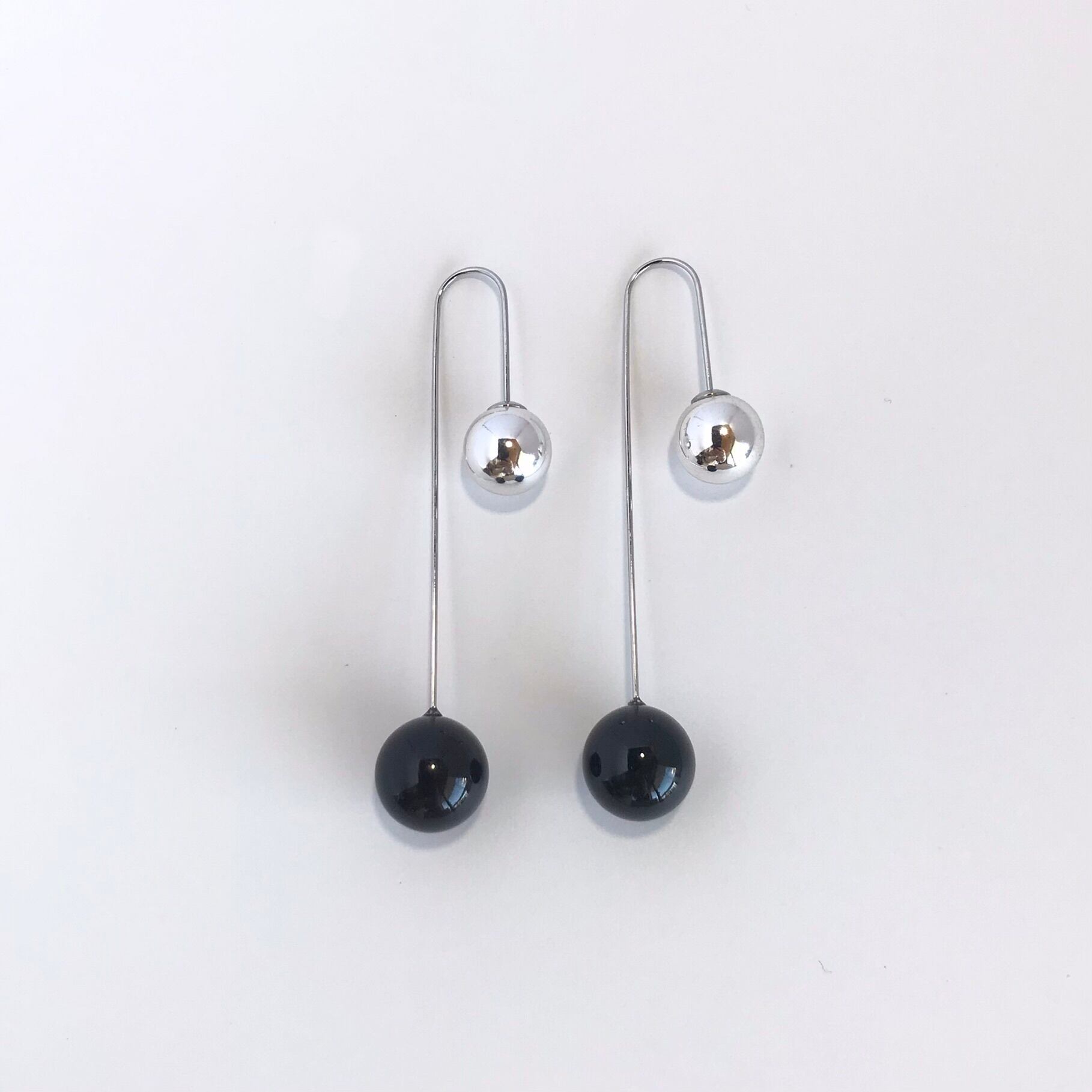 黒とシルバーのボールがクールなピアスです。